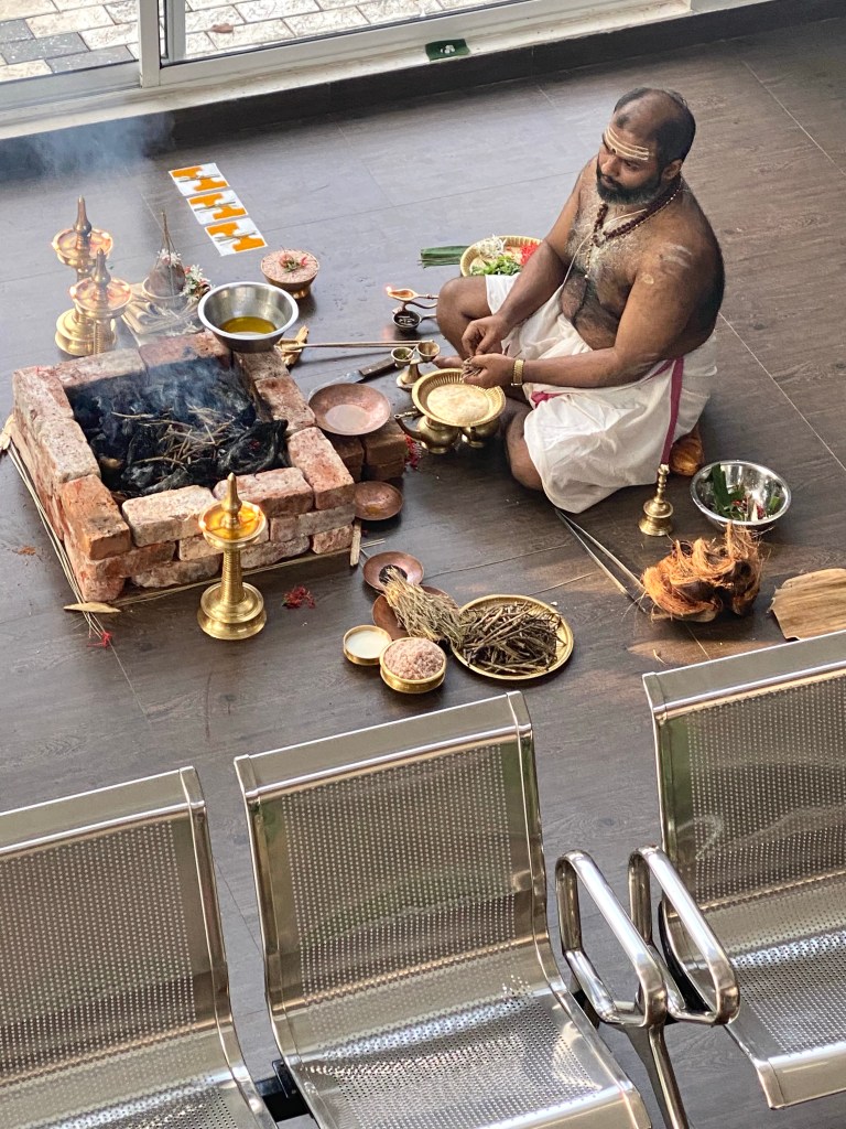 Officier par un prêtée se déroule une puja probablement liée à la rémission de la maladie, du malheur, de la mauvaise augure.
