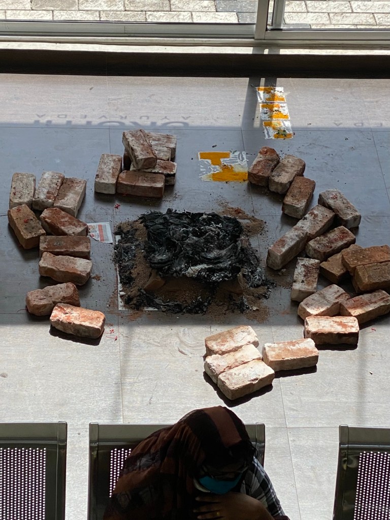 Odeur de fumée, tôt le matin, odeur de sentiments qui s’envolent vers le ciel au sein du hall central du bâtiment.