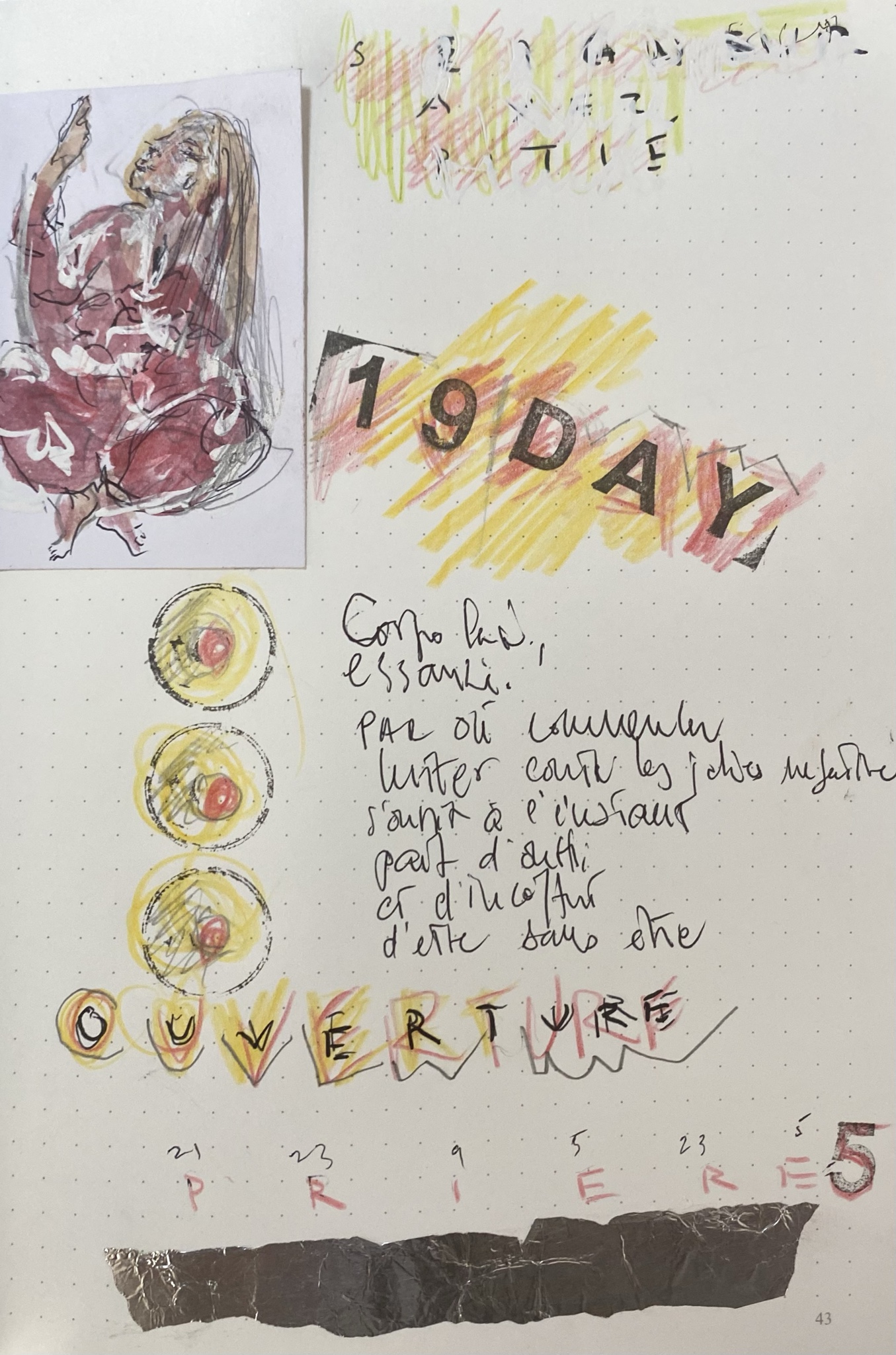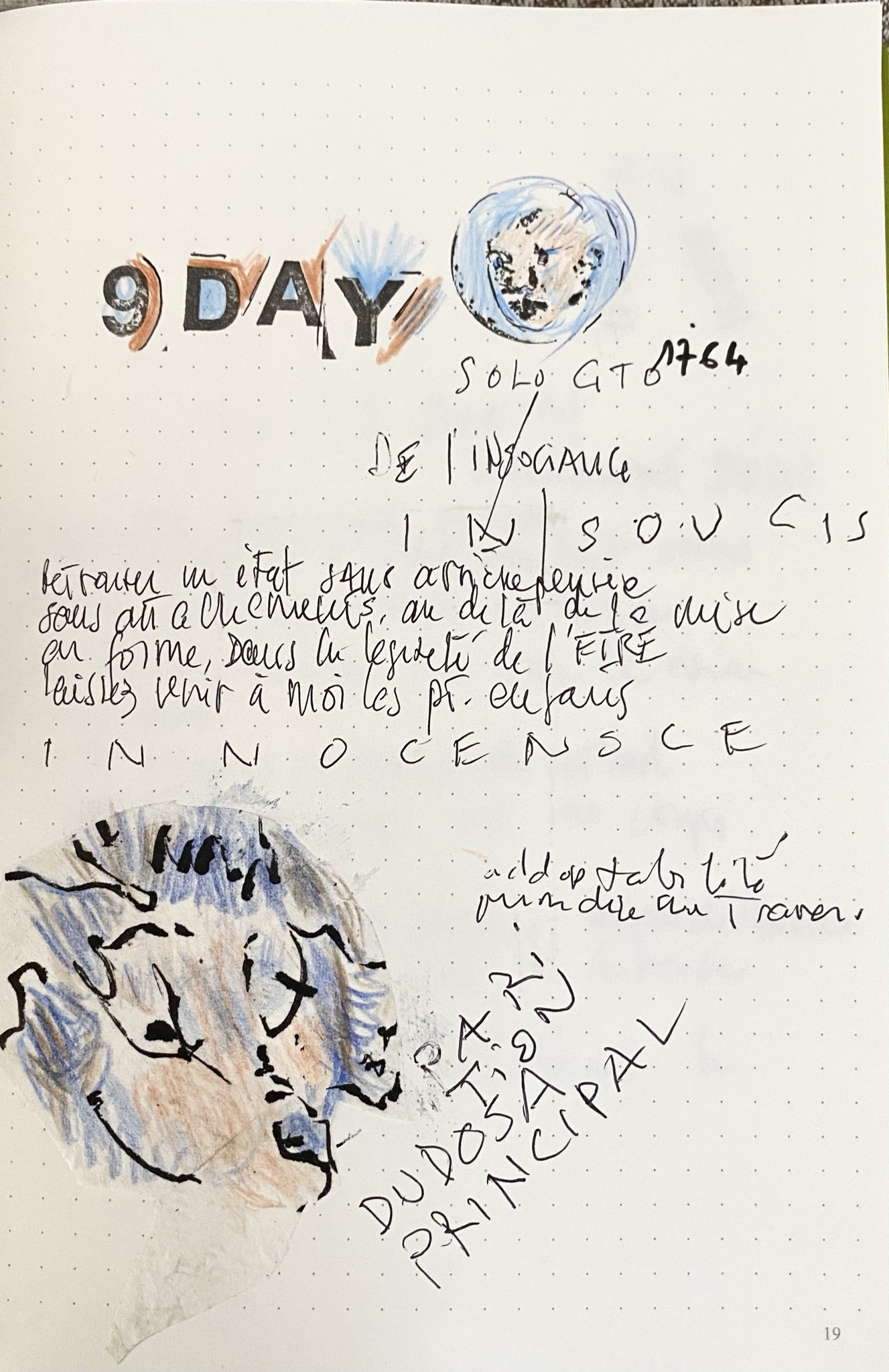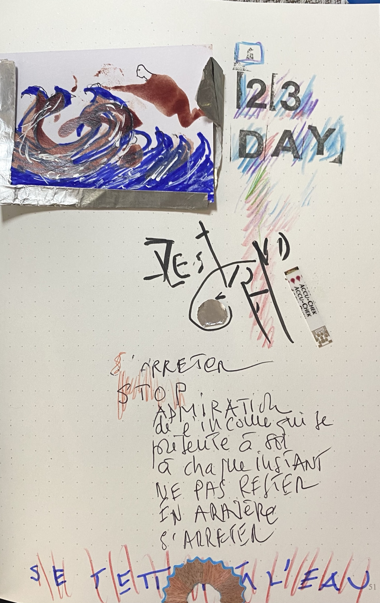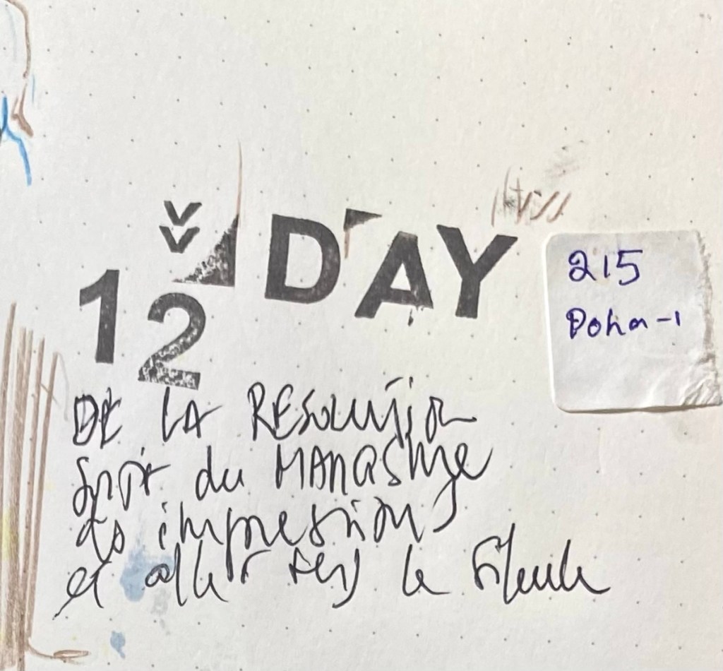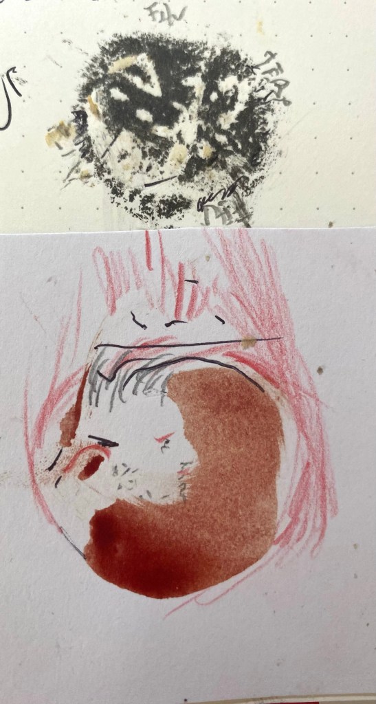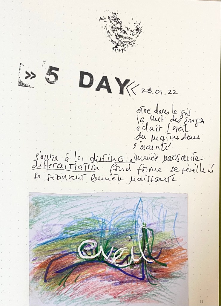 En milieu de journée : des gouttes pour les yeux; suspendu de l’extérieur, je suis rentré dans une méditation sur la question de la division, question qui revient au fil des années sur l’origine de cette séparation dans l’œuf, dans la graine