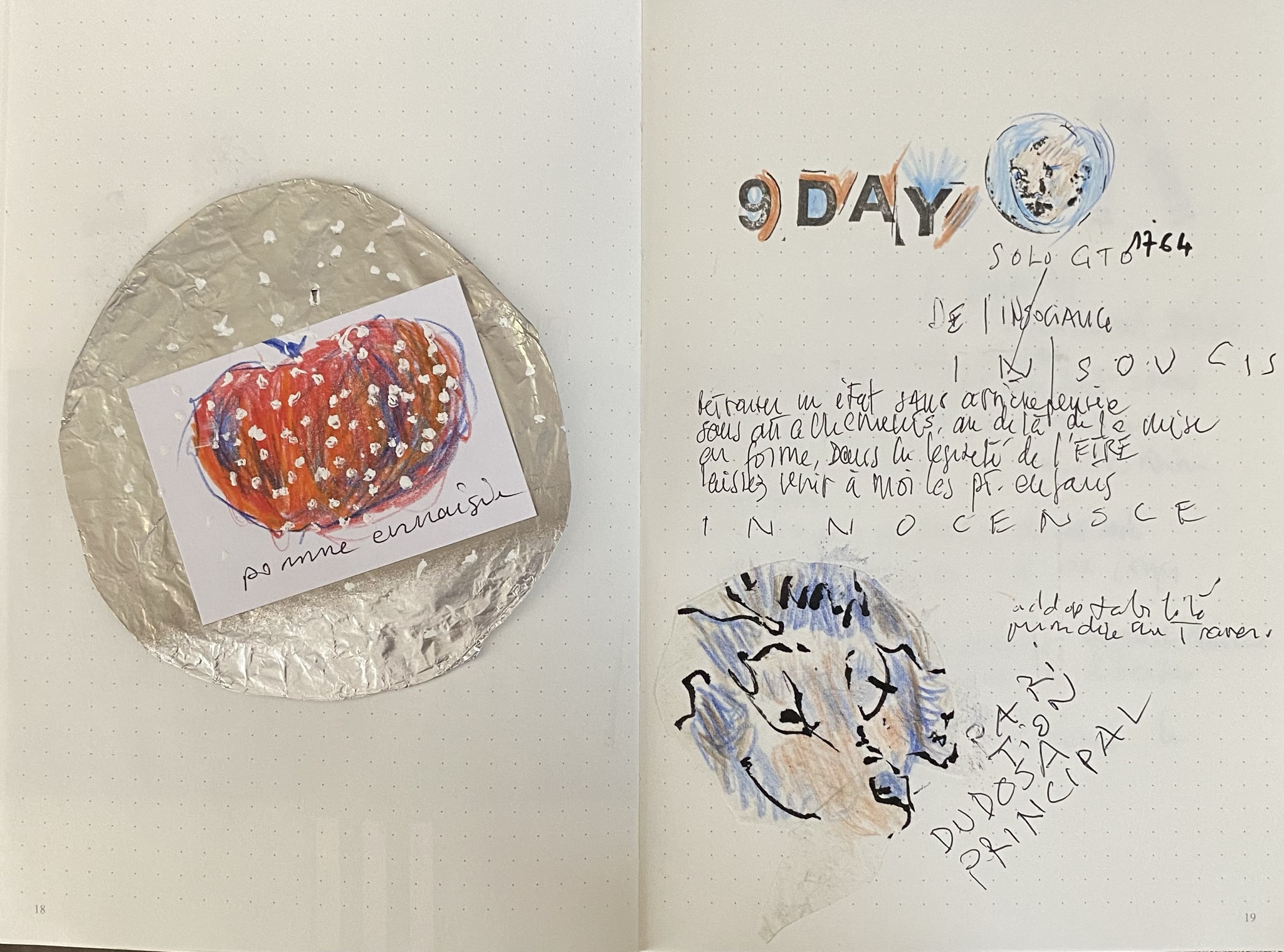 In the middle of the day : eye drops; suspended from the outside, I entered into a meditation on the question of division, a question that comes back over the years to the origin of this separation in the egg, in the seed