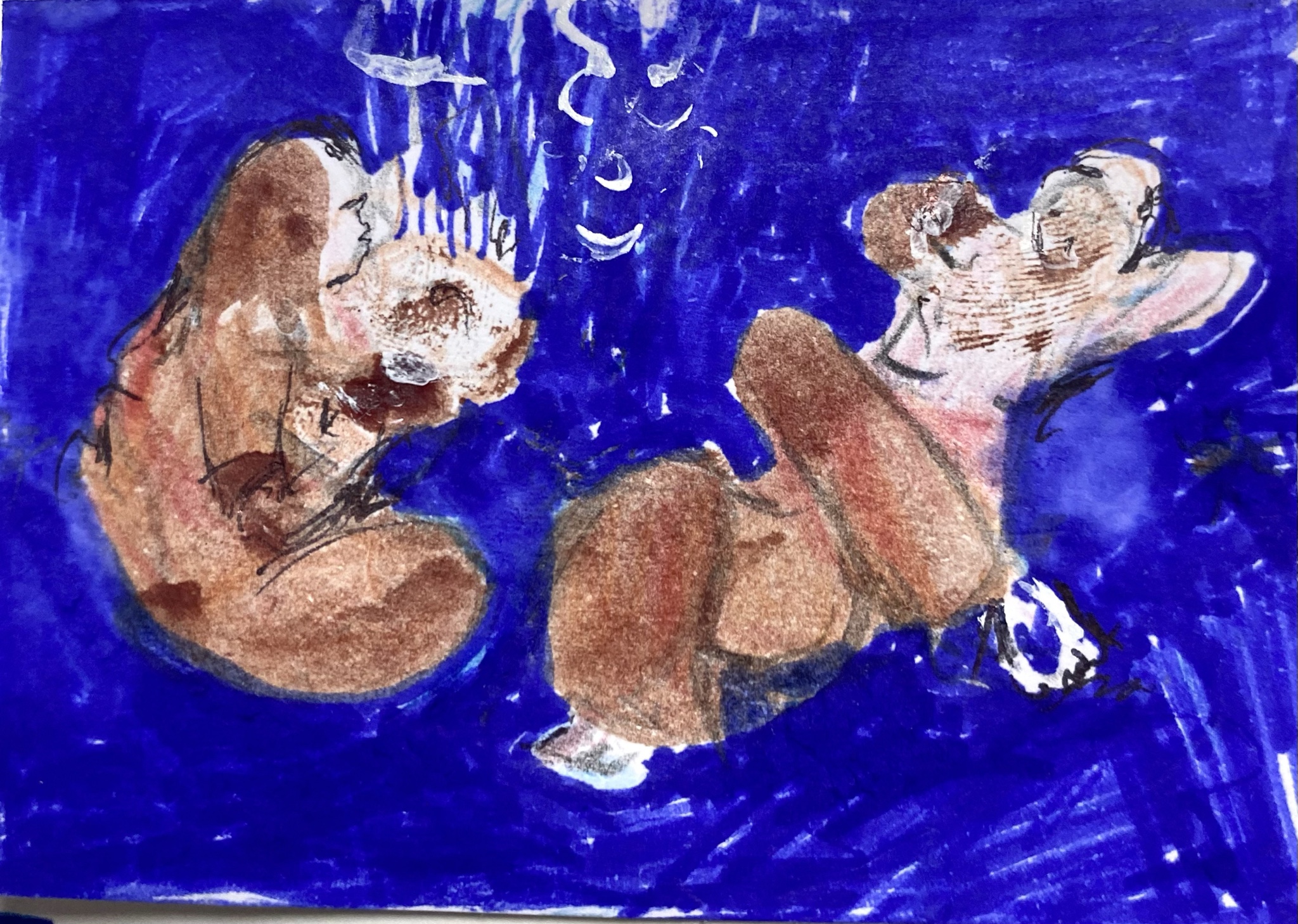 In the massage session this morning I made a discovery; that of the side massage lying on the table like the Buddha, the two masseurs use both the shoulder and the arm, the flank and the thigh first impression of a single and undivided body, unlike when it is facing or back